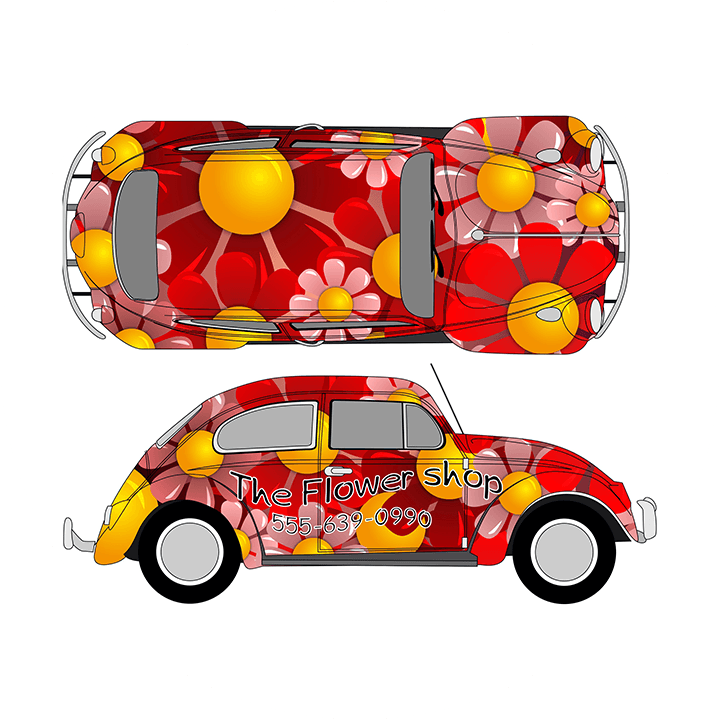 Are a mixture between full wraps and decals. An economical option to the full vehicle wrap is a partial vehicle wrap. A partial wrap integrates the color of the vehicle into the design of the wrap. With spot graphics or decals strategically placed to finalize your marketing message and the design.